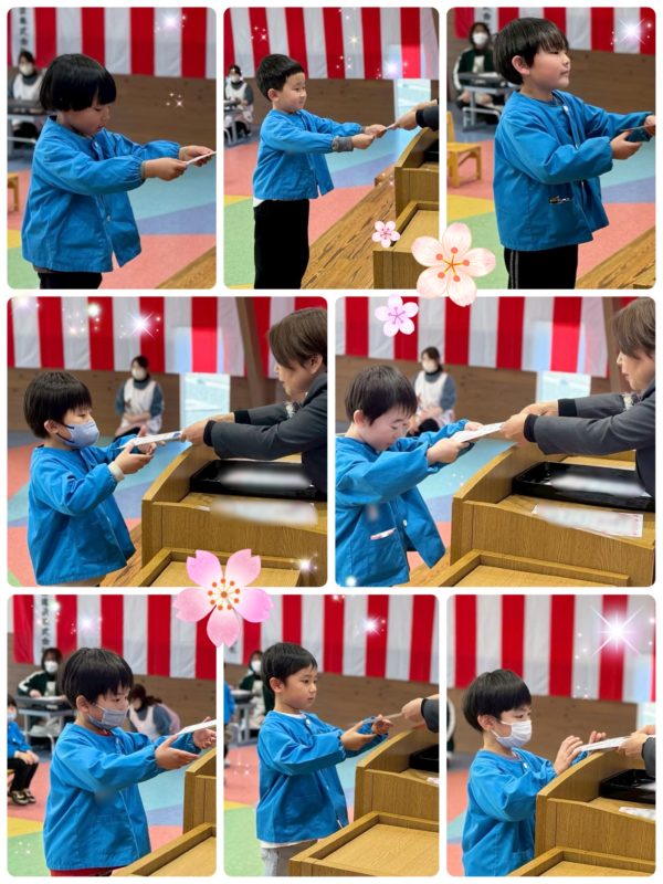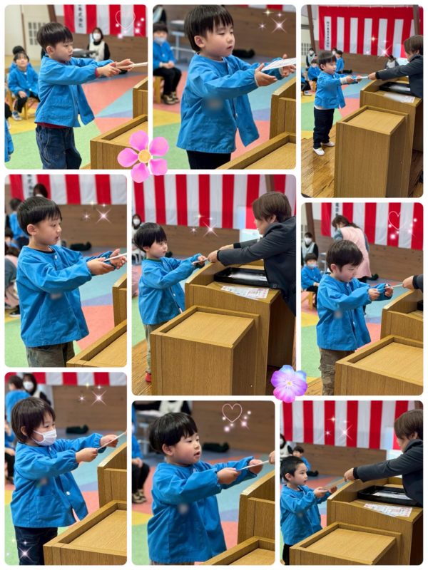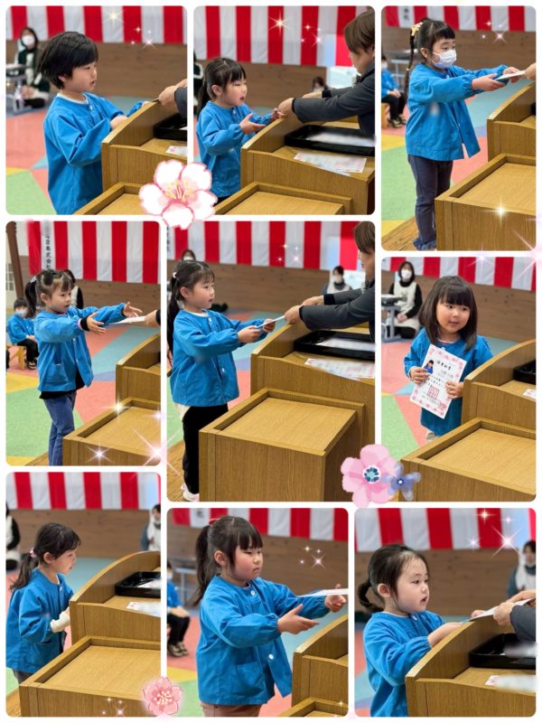 園長先生から一人一人証書を手渡され、少し緊張しながらも次の学年に進級できることを喜んでいた子ども達でした‼︎