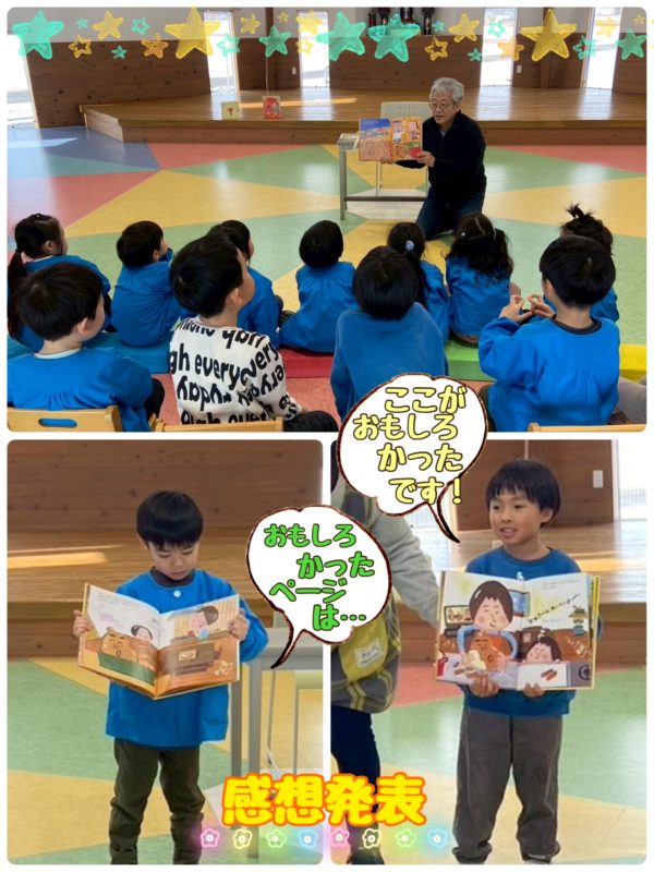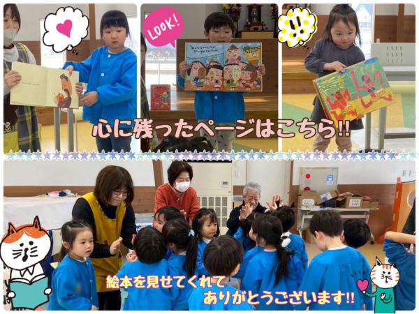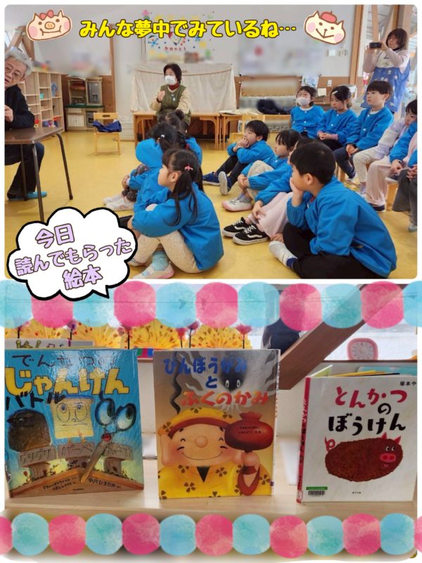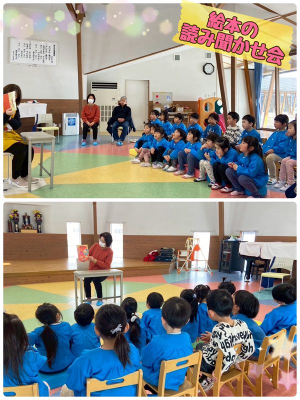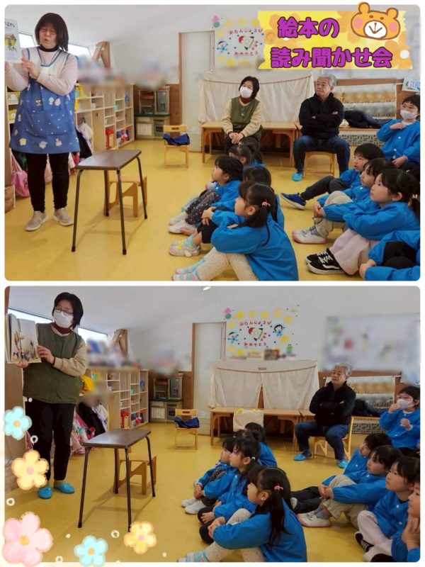 (毎月一回、絵本の読み聞かせボランティアの方々が園に来てくださっています‼︎)