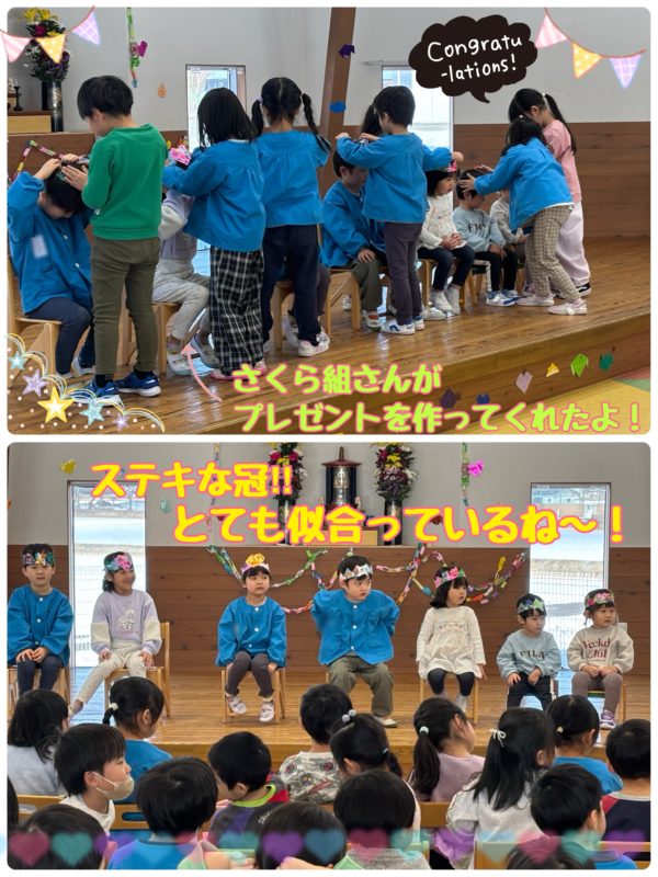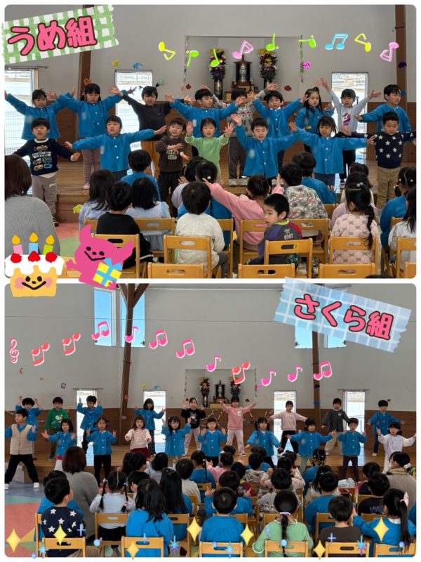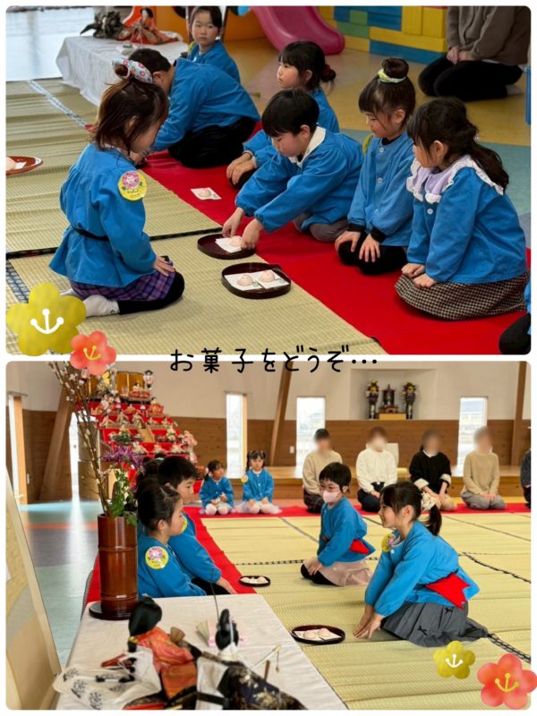 さくら組さんがおはこびをするお茶会に、うめ組さんが招待されました。
