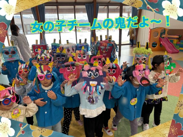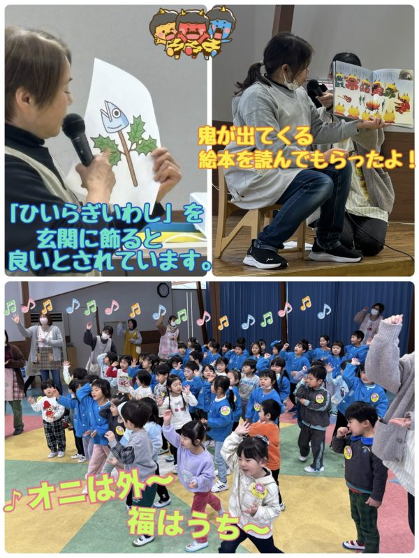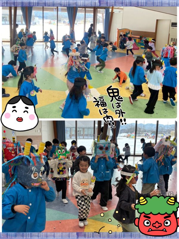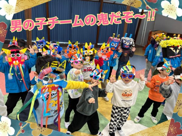 最後には本物の鬼…⁉︎も登場し、「キャーキャー!」盛り上がりを見せた豆まき会でした。