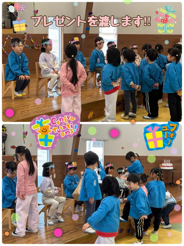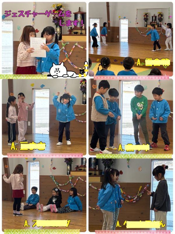 今月のお誕生会のお楽しみコーナーは『ジェスチャーゲーム』を行いました。