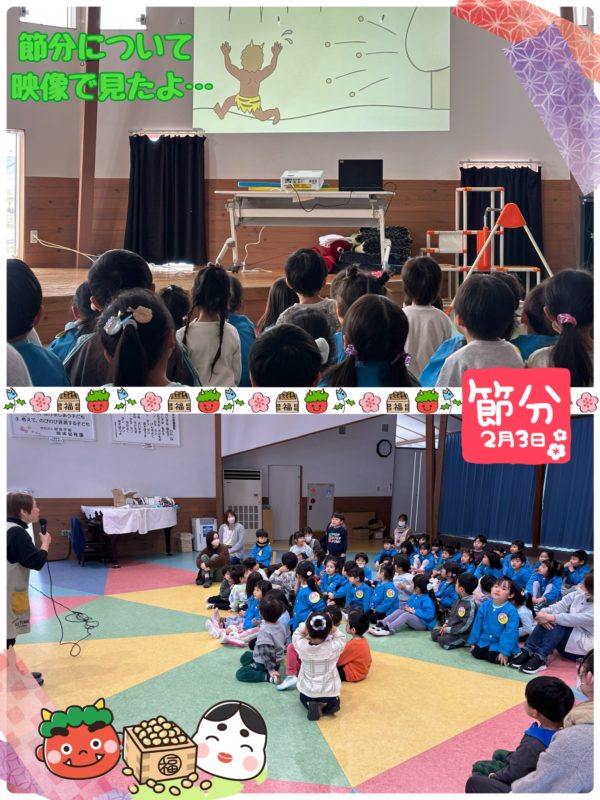 - 2月3日のあねよう(1)・豆まき会(もも、うめ、さくら組)