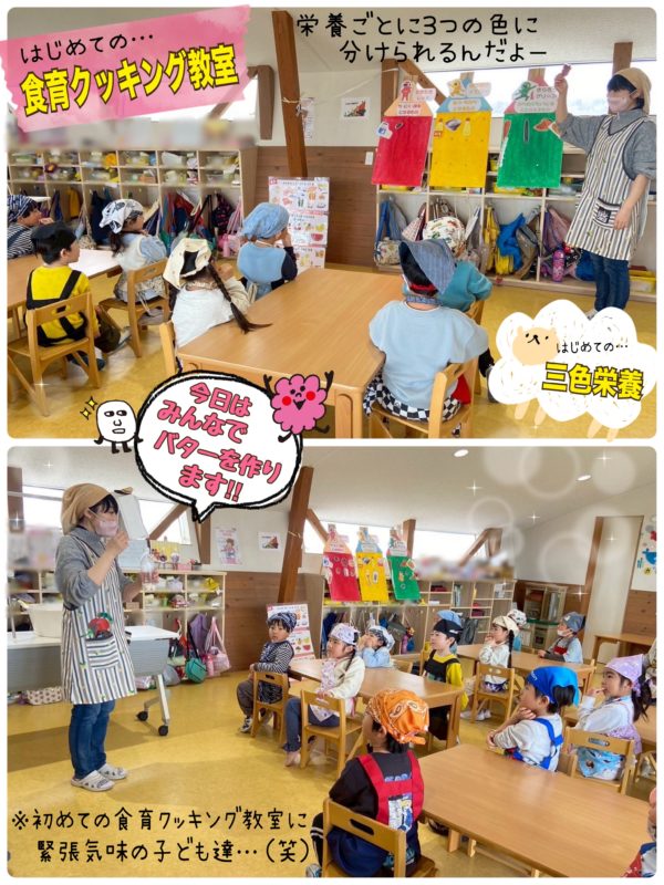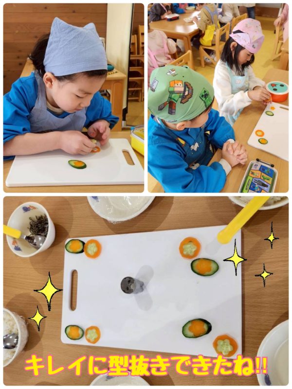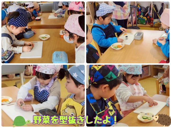 4月からさくら組になるうめ組の子ども達が、初めての『食育クッキング教室』を行いました。