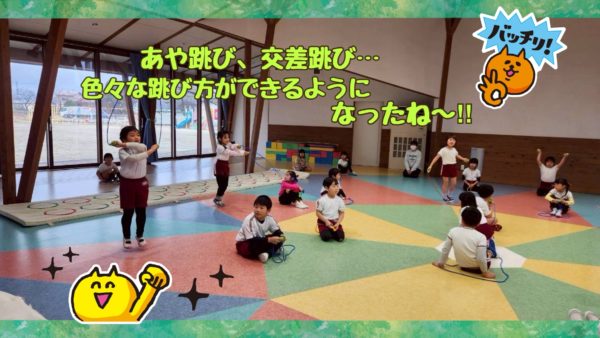 もも組の頃から三年間、体育教室をしてきた子ども達。今日が最後の体育教室かぁ…と思うと、なんだかうるっとしてしまいそうです。