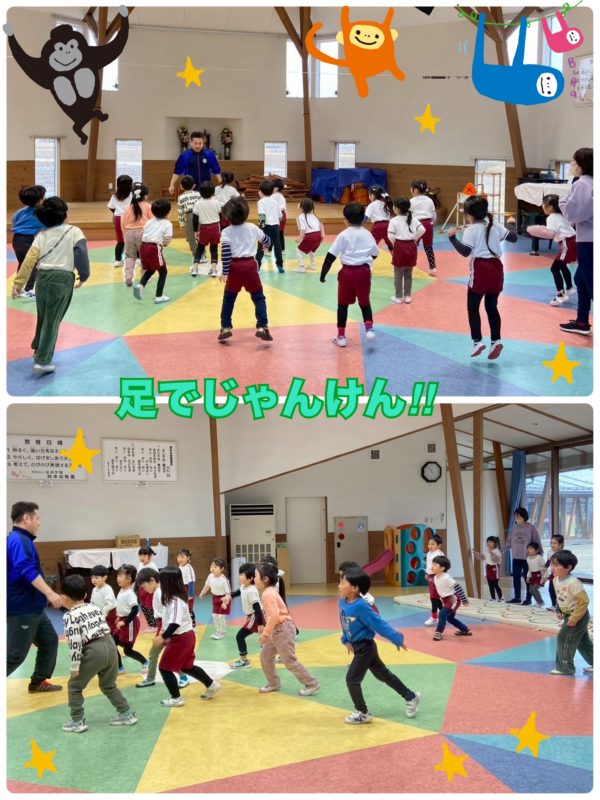 …ということで、もも・うめ・さくら組の皆んなで一つの円になり楽しみました。