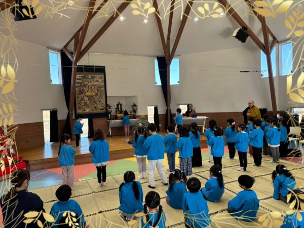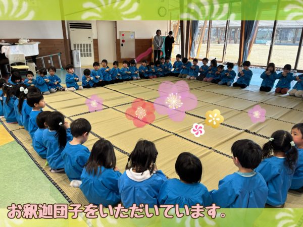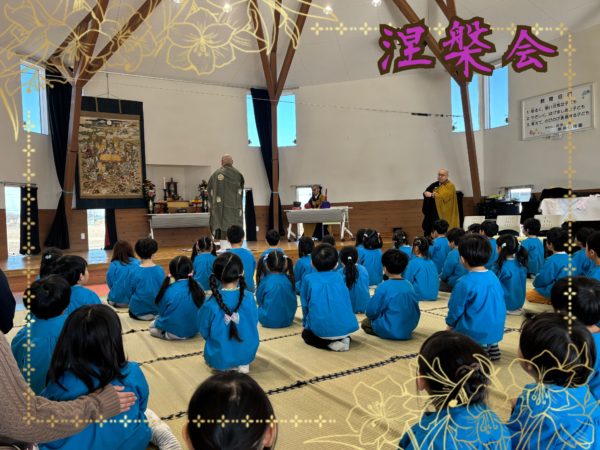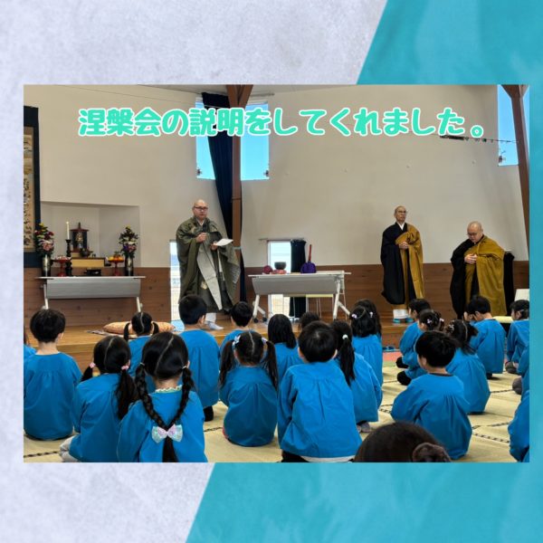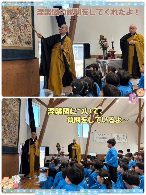 2月15日はお釈迦様が亡くなった日で、園では毎年、ののさま(お釈迦様)を偲び法要を行っています。