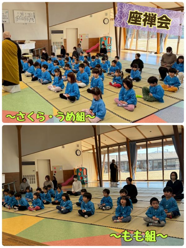 園では毎年この時期に何度か座禅を行っています。(普段は活発に遊ぶ元気な子ども達ですが、時には心と体を落ち着けることも必要‼︎ということで取り組んでいます。)