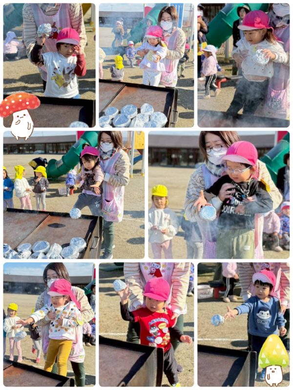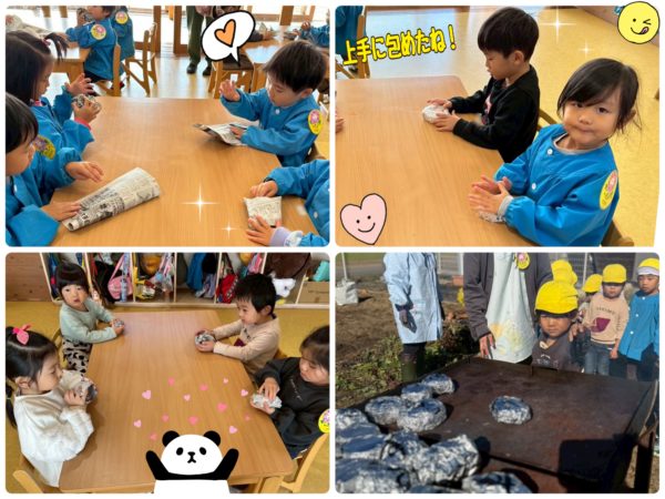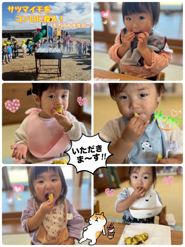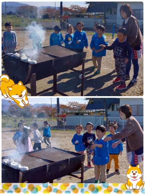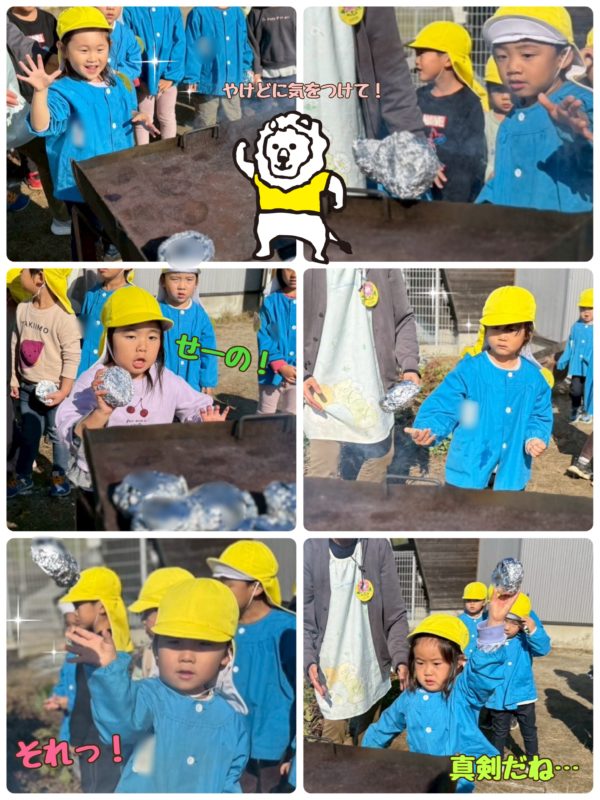 熱いコンロは、ちょっぴり怖かったけど、頑張ってサツマイモをコンロに投入したよ!