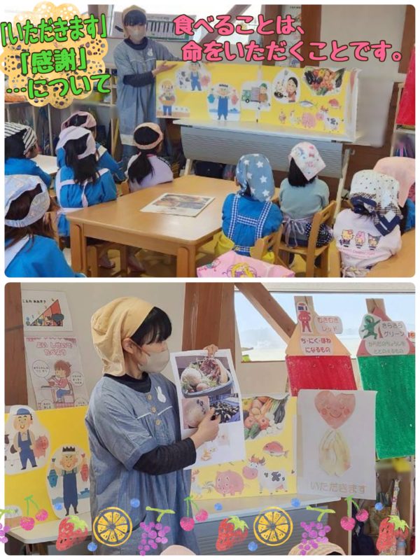 管理栄養士の先生から「食べることは命をいただくことです。だから感謝し、いただきます!をしましょうね〜。」と教えていただきました!