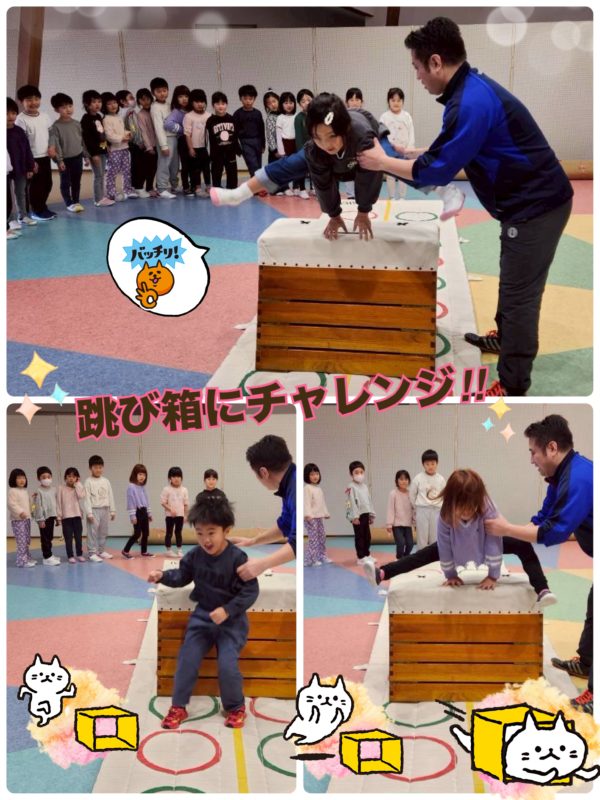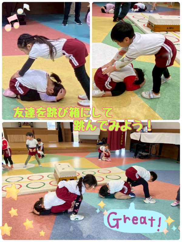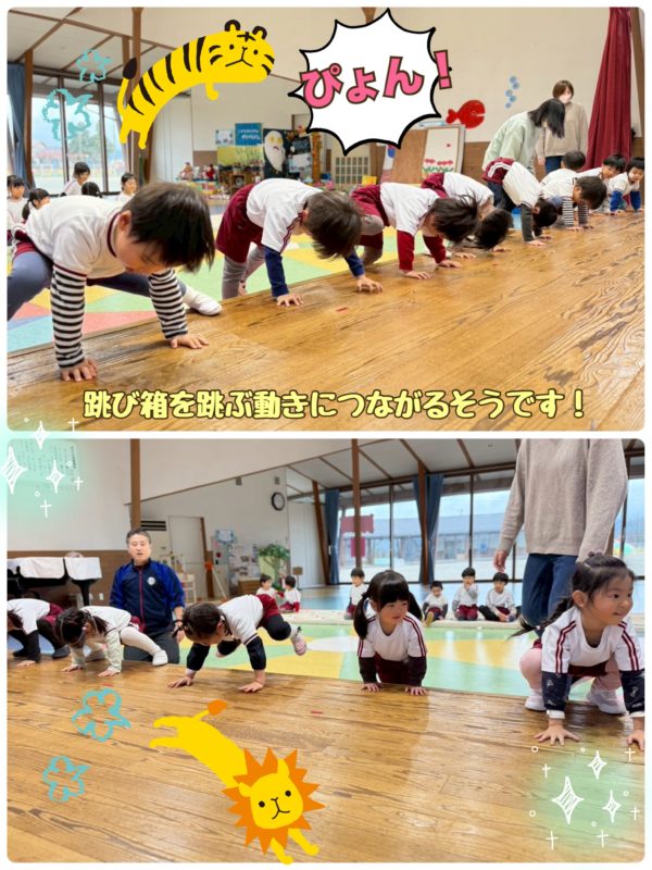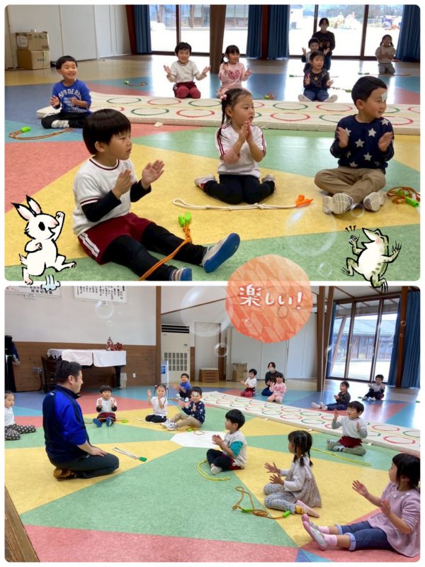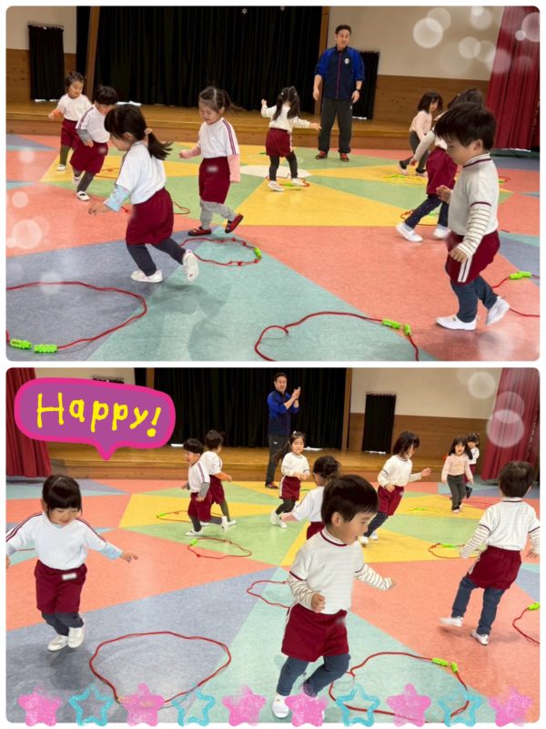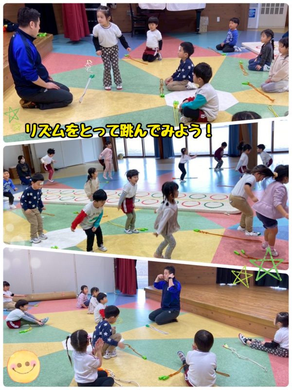 縄跳びを跳ぶ基礎となる動きに挑戦しました。