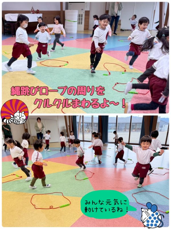縄跳びロープを使い終わったら、きちんと結んでお片付け!