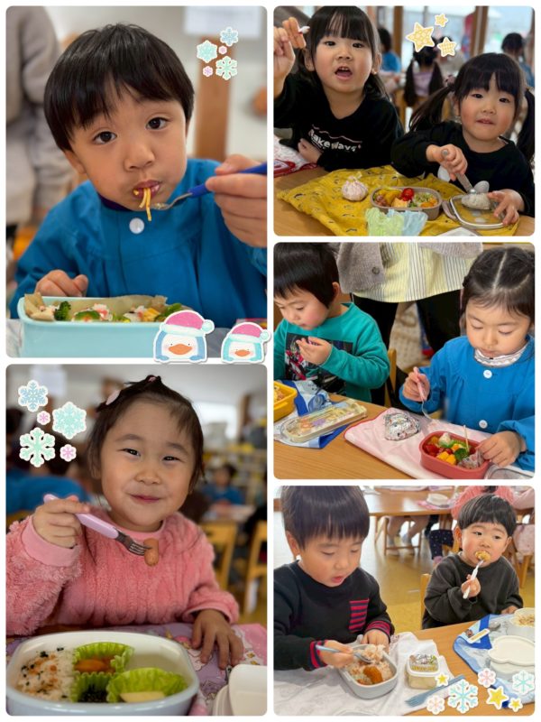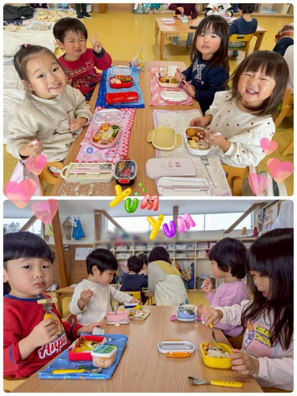 子ども達は朝から「お弁当早く食べたいよぉ〜」と楽しみにしていました。