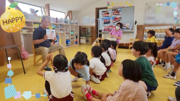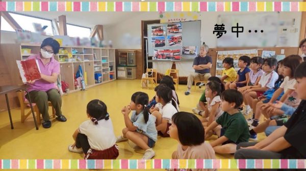 毎月一回行われている絵本の読み聞かせ会。今月はさくら組さんが読み聞かせをしてもらいました。