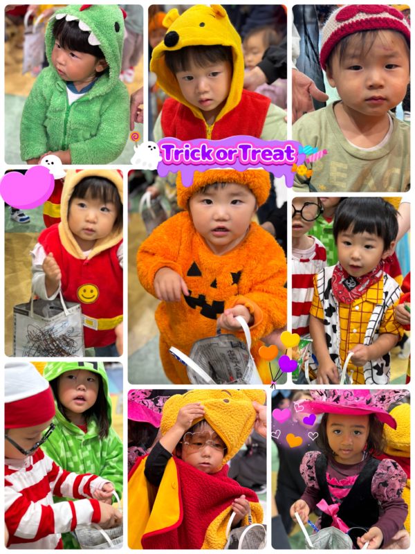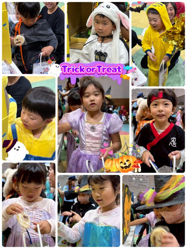 カード取りゲームの後は…子ども達が楽しみにしている「トリック オア トリート!」おやつをもらったよ〜!